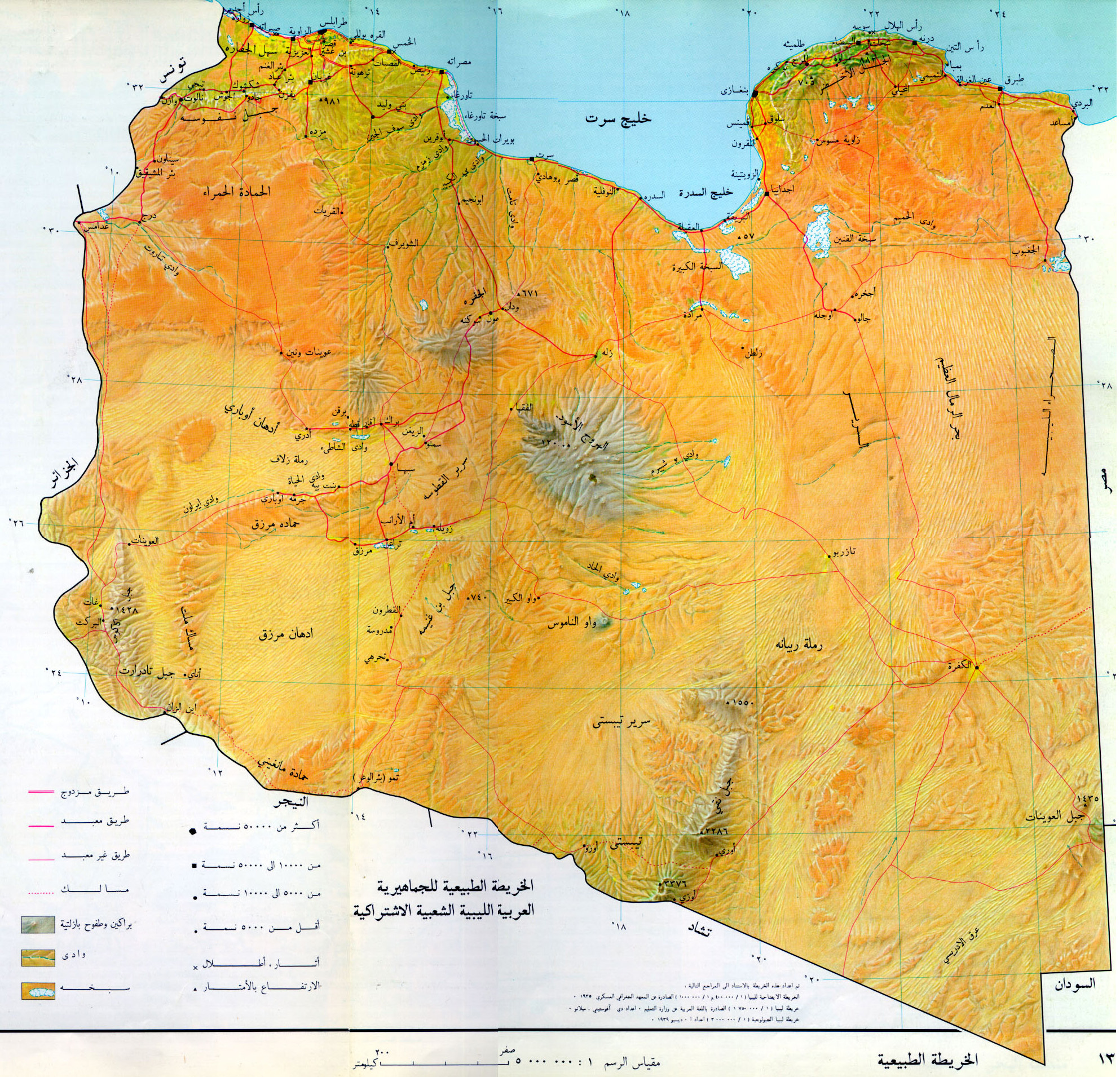 • carte physique de la Libye (en arabe)